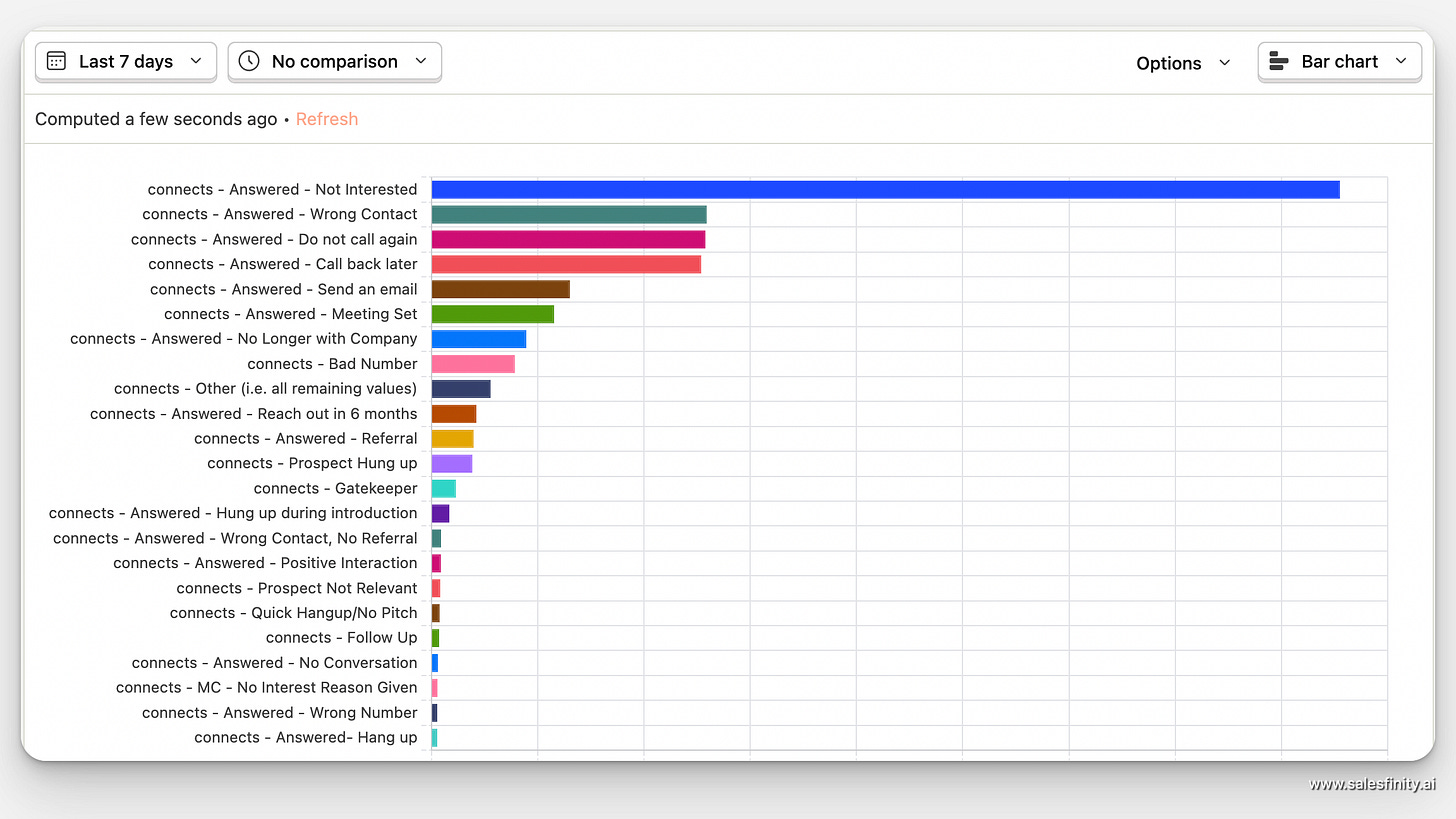 (âNot interested,â âFollow up,â âExisting vendor,â âWrong timing,â etc.)